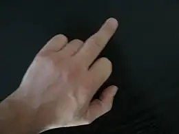 Dans de nombreux pays, un majeur tendu est un geste obscène appelé doigt d'honneur, considéré généralement comme une évocation visuelle d'une pénétration "honteuse" ou dégradante (vaginale, anale).