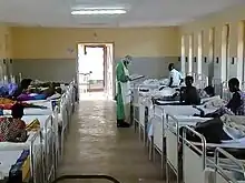 Salle de confinement d'un hôpital à Gulu, en Ouganda, lors de l'épidémie d'octobre 2000.