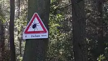 - en Europe, la tique Ixodes Ricinus peut aussi transmettre Anaplasma phagocytophilum et Babesia microti agent de la babésiose, et aussi l'encéphalite à tique (due à un virus)[32],[33] ;