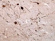 - ↑ (en) Schulz-Schaeffer WJ, « The synaptic pathology of alpha-synuclein aggregation in dementia with Lewy bodies, Parkinson's disease and Parkinson's disease dementia », Acta Neuropathol., vol. 120, no 2, , p. 131–43 (PMID 20563819, PMCID 2892607, DOI 10.1007/s00401-010-0711-0)