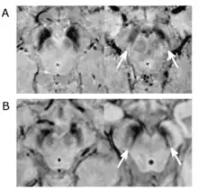 - ↑ E. C. Hirsch, J. P. Brandel, P. Galle et F. Javoy-Agid, « Iron and aluminum increase in the substantia nigra of patients with Parkinson's disease: an X-ray microanalysis », Journal of Neurochemistry, vol. 56, , p. 446-451 (ISSN 0022-3042, PMID 1988548, lire en ligne, consulté le )