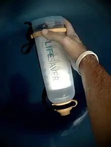 Bouteille LifeSaver, utilisée par l'armée ou en situation de crise humanitaire pour produire par ultrafiltration de petites quantités d'eau potable. Il existe aussi un équivalent en "tube d'aspiration" (LifeStraw) plus léger