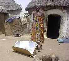 Un simple cuiseur solaire à concentration, comme ici à Zouzugu (Ghana) limite le besoin d'eau et diminue les risques de maladies hydriques (dont la Dracunculose) en permettant une pasteurisation gratuite de l'eau (quand le soleil est présent)