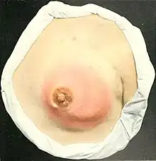 La mastite est une complication assez fréquente de l'allaitement maternel : son incidence est variable, comprise entre 2 et 33 %[1]. Sa cause principale est la stagnation du lait dans le sein secondaire à l'obstruction d'un canal galactophore. Elle peut aller d'une simple inflammation jusqu'à la formation d'un abcès, cette évolution concernant moins de 0,5 % des femmes allaitantes[2]. Sauf exception, elle ne nécessite pas l'arrêt de l'allaitement.