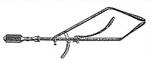 - Intropelvimètre : « L'une des branches de ce compas est introduite dans le vagin et vient prendre appui sur la face postérieure du pubis ; l'autre branche pénètre dans le bassin, en glissant dans le rectum, jusqu'à ce qu'elle arrive au contact du promontoire[Note 6] ». Mme Boivin, dans le mémoire où elle décrit son intropelvimètre, ajoute qu'il pourrait être employé comme céphalomètre pour mesurer la tête pendant l'accouchement. L'invention est décrite dans un texte, Recherches sur une des causes les plus fréquentes et la moins connue de l’avortement …