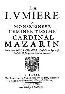 - ↑ Marin Cureau de La Chambre, Les Charactères des passions, Advis nécessaire au Lecteur, vol. I, 1640.