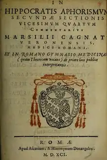 - In Hippocratis aphorismorum secundæ sectionis XIV, commentarius, Rome, 1591, in-4° ;