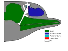 - ↑ Cranford TW, Amundin M, Norris KS. 1996. Functional morphology and homology in the odontocete nasal complex: implications for sound generation. Journal of Morphology 228: 223–285.