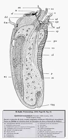 Coupe d'epidinium ecaudatum. La membranelle est indiquée "am" en haut du schéma.