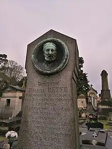 Le professeur Peter est enterré au cimetière Notre-Dame de Versailles.