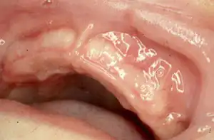 La cavité buccale du nouveau-né est dépourvue de dents, et (à la naissance, normalement) de bactéries ou champignons. Elle est rapidement colonisée par des bactéries provenant du microbiote des parents et de l'environnement (dont Streptococcus salivarius).