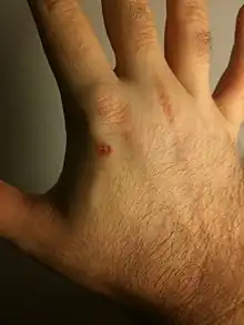 Jonathan Oxer s'auto-implante une puce RFID dans le bras à l'aide d'un kit vétérinaire[7].