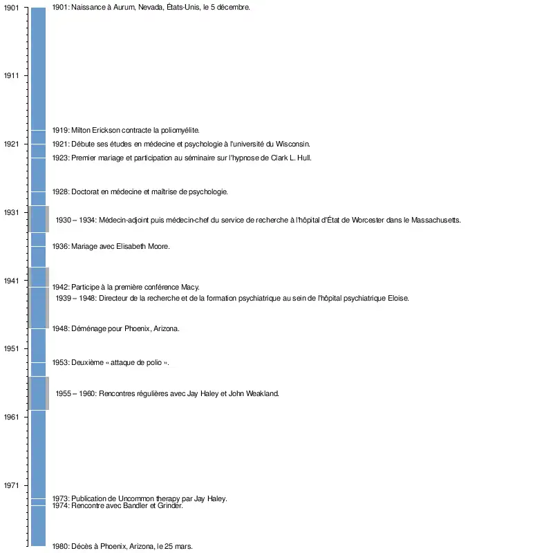 - ↑ Jay Haley, Un thérapeute hors du commun : Milton H. Erickson, Paris, Desclée de Brouwer, , p. 16.