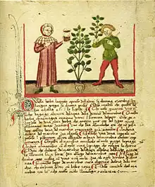 - ↑ Cette liste de composants et de médicaments n'est pas exhaustive. Consulter Georges Dillemann, « La pharmacopée au Moyen Âge. I. Les ouvrages ». Revue d'histoire de la pharmacie 1968;(199):163-170. et surtout Georges Dillemann, « La pharmacopée au Moyen Âge. II. Les médicaments » Revue d'histoire de la pharmacie 1969;(200):235-244. [lire en ligne]