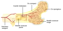 Les os sont composés d'une substance compacte se trouvant à l’extérieur de l'os, et d'une substance spongieuse se trouvant à l’intérieur de l'os. Cette substance spongieuse ressemble à une éponge rigide et réserve des cavités plus ou moins grandes entre la substance osseuse (les trabécules)[1]. Ces cavités sont remplies par une matière appelée moelle osseuse[2].