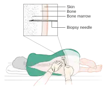 - ↑ (en) Rindy LJ, Chambers AR, « Bone Marrow Aspiration And Biopsy », StatPearls [Internet], Treasure Island, Florida, USA, StatPearls Publishing, 2021 Jan–, updated 2020 jun 12 (PMID 32644658, lire en ligne)