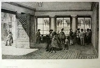 Une autre sentence de prévôt du , associe la basse geôle du Châtelet à l'identification des cadavres[8]. Ultérieurement lesdites cellules ayant été transférées dans une autre partie du Châtelet, la « morgue » fut affectée, au XVIIIe siècle et jusque vers 1807, à l'exposition des corps trouvés sur la voie publique ou noyés dans la Seine. Une ouverture pratiquée dans la porte permettait de les reconnaître « en se pinçant le nez[9]. »[10]