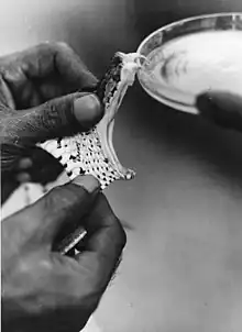 - Sucer le venin, par la bouche ou par l'intermédiaire d'une pompe, peut exacerber les dommages à l'endroit mordu, et ne fonctionne pas forcément[40]. Une succion commencée trois minutes après la morsure permet de retirer une quantité médicalement insignifiante de venin — moins d'un millième de la quantité injectée – comme il l'a été montré dans des études sur l'homme[41]. Dans une étude portant sur les porcs, la succion n'était pas seulement inefficace mais causait aussi la nécrose de la zone aspirée[42]. Aspirer par la bouche présente aussi un risque d'empoisonnement par la voie orale à travers les muqueuses[43]. Il y a également un risque d'infection de la plaie.