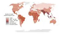 Comme il n'est pas obligatoire de reporter les morsures de serpents dans diverses régions du monde[50], il est très difficile d'estimer leur fréquence au niveau international. Toutefois, on estime que tous les ans 5,4 millions de personnes sont mordues par des serpents, dont 2,5 millions d'envenimations, qui conduisent à environ 125 000 décès[50]. D'autres estimations envisagent entre 1,2 et 5,5 millions de morsures, dont 421 000 à 2 millions d'envenimations et entre 81 000 et 138 000 morts selon les années[57]. Annuellement, 400 000 personnes gardent des séquelles ou des handicaps à vie après une morsure[6].