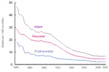 La mortalité périnatale est définie comme le nombre de mortinaissances (naissance après 22 semaines d'aménorrhée d'un fœtus sans vie[1][réf. nécessaire]) et de décès néonatals précoces (décès d'enfants de moins d'une semaine).
