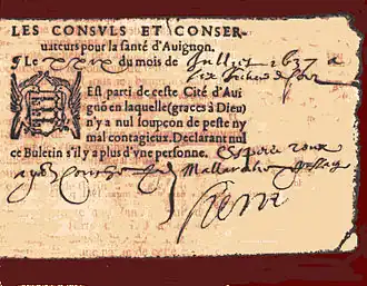 La peste atteignit Apt, le [1], et Carpentras le , où l’on exposa les reliques de saint Siffren et le Saint-Clou pour éloigner le fléau. Un an plus tard, à Méthamis, le , le bureau de santé ordonnait :