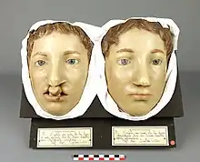 Les pièces les plus spectaculaires, dont certaines sont parmi les plus anciennes, sont des représentations en cire de diverses lésions disséquées ou non disséquées. Certaines cires montrent les préoccupations didactiques de leurs auteurs. On peut ainsi voir trois moulages successifs à trois stades différents de la dissection d'un même anévrysme syphilitique de Chaussier et deux pièces de bec de lièvre représentées avant et après opération. L'opérateur était Antoine Dubois (1756-1837), et les interventions datent de 1799 et de 1800.