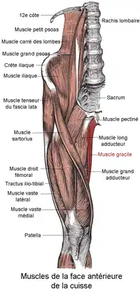 Le muscle gracile (ou muscle droit interne de la cuisse) est un muscle du membre inférieur situé dans la cuisse. Il appartient à la loge fémorale médiale.