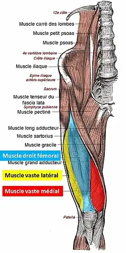 Droit fémoral : bleu Vaste latéral : jaune Vaste médial : rouge