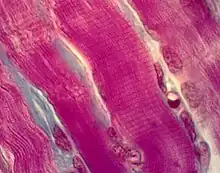 Le muscle strié est un tissu musculaire caractérisé par la présence de stries en microscopie, du fait de l'organisation régulière des filaments[1].