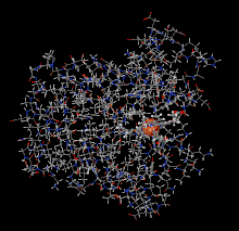 En 1957, John Kendrew et ses collaborateurs déterminèrent avec succès la structure en trois dimensions de la myoglobine[14] par la cristallographie par rayons X. Pour cette découverte, il partagea en 1962, le prix Nobel de chimie avec Max Perutz.