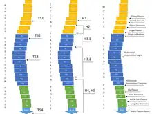 Chaque muscle dans le corps est relié à un ou plusieurs niveaux (segments) de la moelle épinière via les nerfs spinaux correspondant. Un groupe de muscles innervés par une seule fibre neuronale motrices issu d'une seule racine nerveuse est défini sous le terme de myotome[2].