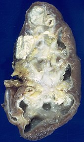 Généralement la nécrose caséeuse se rencontre dans les foyers de contamination des infections de la tuberculose[1]. Elle peut aussi être causée par la syphilis et certains champignons (dans les mycoses), par exemple l'histoplasmose, la cryptococcose et la coccidioïdomycose[2],[3],[4].