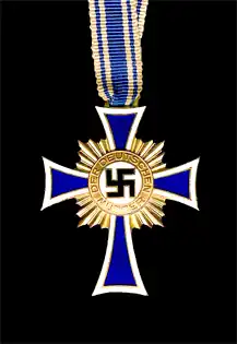 La mère et l'enfant sont dits comme « le plus grand des trésors de la nation »[2], non pas en tant que personnes, mais comme la continuité du Volkskörper. Le Troisième Reich restreint étroitement le contrôle des naissances, interdit l'avortement, tout en se donnant comme objectif des familles de quatre enfants. Au-delà, des médailles récompensent les meilleures mères allemandes (l'or pour huit enfants). À partir de 1938, tous les fonctionnaires publics célibataires doivent choisir entre se marier ou démissionner. Les femmes célibataires en âge de se marier ne sont plus considérées comme des citoyennes[6].