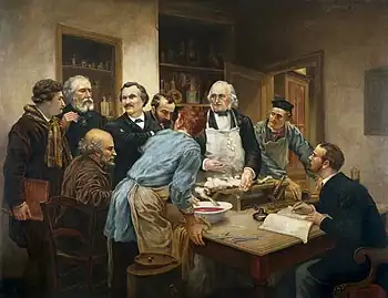 - Le bicentenaire de la naissance de Claude Bernard en 2013 a été également l'occasion de se pencher sur ses disciples, tels qu'immortalisés par le tableau de Lhermitte, exposé à l'Académie de médecine[30]. Ce travail a notamment été effectué par des chercheurs et documentalistes de l'Université Claude-Bernard à Lyon. : « Nestor Louis François Gréhant : disciple de Claude Bernard » rédigé et illustré en juillet 2013 par Interfaces/Livres anciens de l'université de Lyon avec le toxicologue et historien des sciences Philippe Jaussaud, Université Lyon 1 (EA 4148 S2HEP et IUT Biologie)[31].