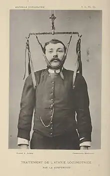 - ↑ (en) Marie-France Weiner et John Russell Silver, « Historical Review: Suspension Therapy for the Treatment of Tabes Dorsalis », European Neurology, vol. 72, nos 3-4, , p. 163–172 (ISSN 0014-3022 et 1421-9913, PMID 25228352, DOI 10.1159/000360620, lire en ligne, consulté le )