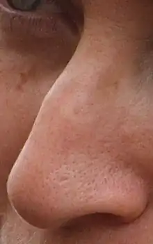 Le nez est particulièrement touché par les carcinomes épidermoïdes en raison de son inclinaison qui le rend plus touchés par les ultraviolets du soleil. Ce carcinome est l’un des cancers de la peau les plus fréquents chez les personnes peu mélanisées (peau blanche)[21].