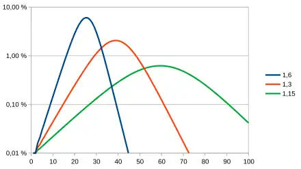 - ↑ En toute rigueur, le nombre d'individus infectés est en moyenne , et la loi de répartition au rang est le produit des lois élémentaires. La variable aléatoire est donc modélisée par une loi log-normale, dont l'espérance « en moyenne » est bien .
