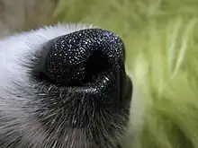 L’olfaction est la fonction sensorielle qui correspond à la perception des substances odorantes. Il s'agit généralement de la perception consciente, qui peut être sollicitée par voie directe (flairage) ou par voie rétro-nasale. Cette fonction est assurée par la muqueuse olfactive qui couvre environ 10 % soit 2 cm2 de la surface totale de la cavité nasale[14]. Des cellules glandulaires, présentes dans la muqueuse et dans la sous-muqueuse, sécrètent un mucus tapissant l'épithélium olfactif, ce qui assure un lavage permanent de la muqueuse.