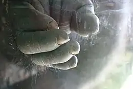 10. Patte de singe à paume calleuse avec 4 doigts garnis d'ongles noirs.
