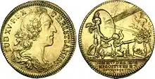 Jeton de la corporation française des miroitiers et opticiens 1773, refrappe datée du XIXe siècle. Description du revers : Un ange debout à droite avec un miroir dont les rayons allument un bûcher placé sur un autel. Devant lui, un enfant assis tenant un télescope et regardant dans une lorgnette.