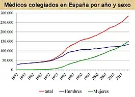 - ↑ Profesionales sanitarios colegiados por tipo de profesional, años y sexo. Instituto Nacional de Estadística. 31/12/2021.