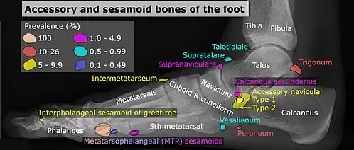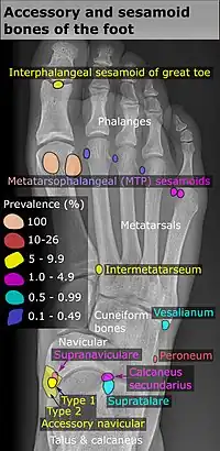 - 1 2 A reference list for shapes, locations and prevalences for included bones is located at Commons:Template:Accessory and sesamoid bones of the foot – references.