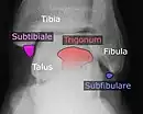 Il peut être confondu avec une fracture par avulsion des tubercules latéral ou médial du processus postérieur du talus.