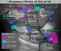 - ↑ Reference list for image is located at Commons:Template:Accessory bones of the wrist – references.