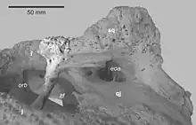 Ni les oiseaux modernes (Neornithes) ni les mammifères n'ont de postorbitaire indépendant. Cependant, l'os est toujours présent chez de nombreux oiseaux mésozoïques[2]. Dans la lignée menant aux mammifères, il est réduit chez les cynodontes non mammifères "supérieurs"[3]. L'arc post-orbitaire (très probablement secondaire) de certains groupes de mammifères (hyrax, musaraignes, primates, chevaux), est formé en proportions alternées par le frontal, le pariétal et le jugal.