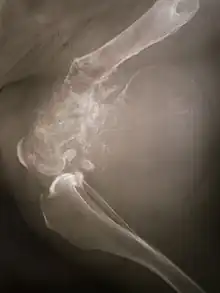 Dans les cas extrêmes, l'ostéosarcome est détecté lors d'une fracture spontanée de l'os. Dans cette situation, la tumeur a consumé la quasi-totalité de l'os.