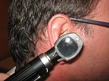 Un otoscope est un instrument médical permettant l'inspection du conduit auditif externe et du tympan. Il est constitué d'un manche, et d'une tête munie d'un système lumineux, d'une lentille grossissante et d'un speculum jetable. Le premier otoscope est inventé en 1834 par Jean-Pierre Bonnafont qui utilise une source lumineuse réfléchie vers l'oreille par un miroir[1] ou transportée par fibre optique à l'intérieur du conduit auditif.