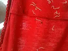 Oxyures femelles, tels qu'on peut les voir sur un vêtement de nuit.