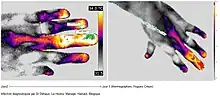 Comme le montre la thermographie ci-contre, la partie visible du panaris n'a aucune commune mesure avec son bassin d'influence, c'est ce qui est en fait son danger principal, il semble extrêmement localisé alors qu'il se répand assez rapidement en interne en suivant les veines.