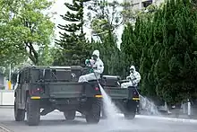 - ↑ (en) Lawrence Chung, « Coronavirus: Taiwan deploys chemical warfare team at airport to disinfect 361 citizens repatriated from Wuhan », South China Morning Post, (consulté le ).